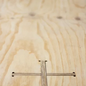 - Quatre peces massisses de contraxapat de pi o bedoll que s’entrellacen amb precisió.
